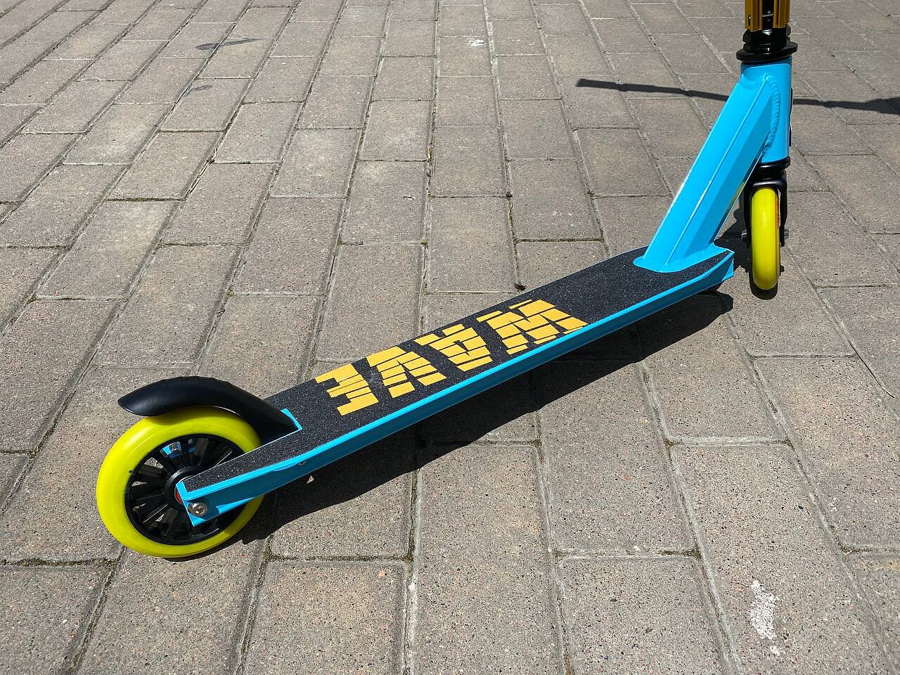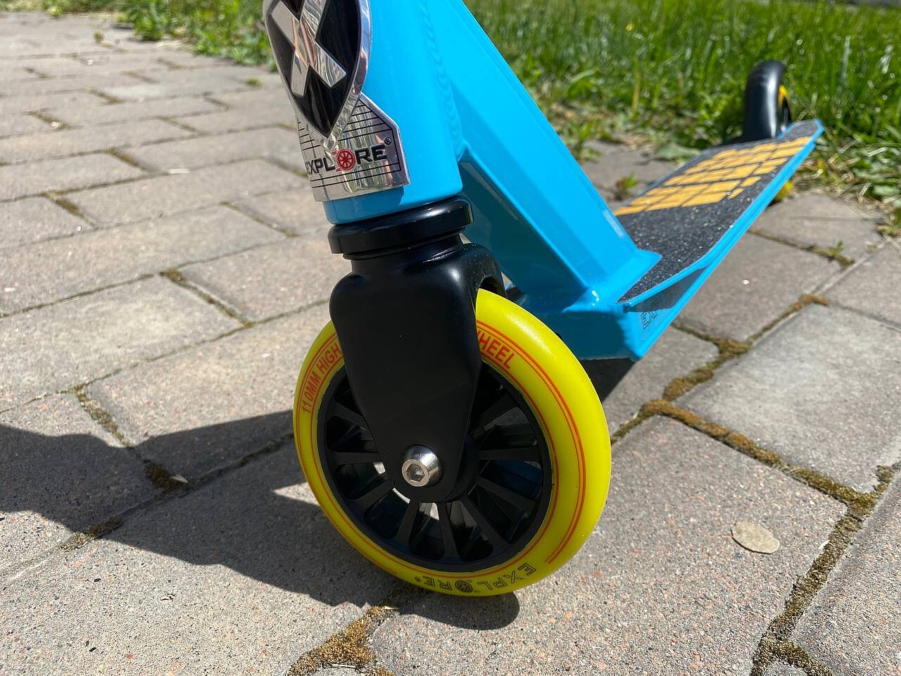Самокат Explore WAVE для начинающих пользователей. Скут имеет низкий вес, усиленный руль с четырех-болтовым хомутом, который обеспечивает максимальный уровень надежности и безопасности, гофрированные грипсы, которые позволяют классно контролировать руль и система компрессии резьба. Передняя вилка трюкового самоката WAVE усилена. Доступно вращение руля на 360 градусов.